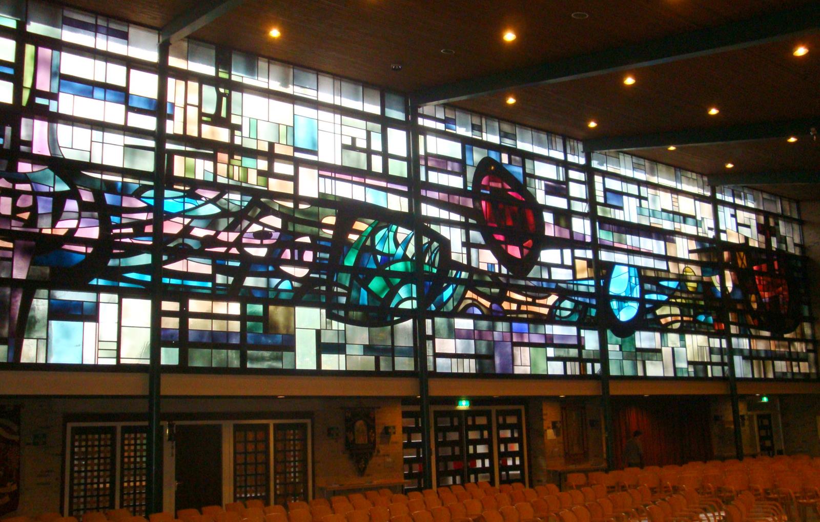 We gaan nog even naar de Moeder van de Verlosserkerk. Opvallend is het uitnodigende brede voorplein. Aan de rechterkant, de kant van het grote zorgcentrum Schalkweide, een flinke, een beetje brutale klokkentoren. Midden op het plein staat een gebeeldhouwde roos die gastvrijheid suggereert. Die is er in Schalkwijk. Binnen in de kerk laten de ramen van de priesterglazenier Egbert Dekkers uit Moergestel een prachtig licht door. Het glas in loodraam is maar liefst 26 meter lang en 6 meter breed. Aan de zijmuur een hoogst opmerkelijke kruisweg van Heleen Koning, een buurtgenote. In de Mariakapel een origineel koperen reliëf dat de kruisafname voorstelt. Wim Andela, ook een Schalkwijker, tekende ervoor. Opmerkelijk zoveel kunstenaars van de eigen kudde in actie! Rond het achthoekige altaar en de lessenaar op het lage podium in de brede hoofdruimte verzamelen zich vele jonge en oude Schalkwijkers. De mensen die hier komen maken niet alleen mooie dingen; ze zetten zich toch vooral in (ook in oecumenisch verband) voor een betere samenleving met en voor alle mensen van goede wil. Schalkwijk heeft minder kerkgebouwen dan voorheen, maar des te meer goede plannen voor een zinnige presentie van de kerk in de 21e eeuw. Het is, om te verwijzen naar de oude betekenis van de naam Schalkwijk, een wijk van mannelijke en vrouwelijke knechten, die de Heer tot in lengte van dagen willen dienen.