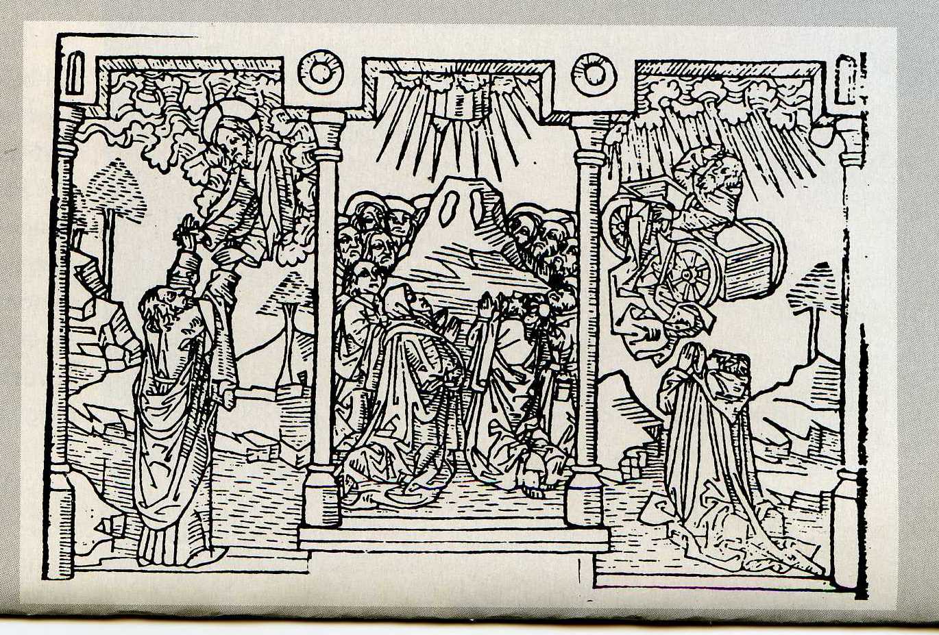 Bijna alle schilderingen (ruim 40) zijn indertijd gemaakt naar afbeeldingen uit het ‘Speculum humanae Salvationis’, een typologisch geschrift, waarvan juist het jaar voor de beschildering, in 1483, een Nederlandse vertaling was uitgebracht: ‘Spieghel onser Behoudenisse’. Beide werken waren een soort ‘Biblia Pauperum’ (Bijbels voor de armen). Het gaat bij zulke werken niet om uittreksels uit de Bijbel voor mensen die geen geld hebben een hele Bijbel te kopen maar om zelfstandig doordacht theologisch werken met bijna uitsluitend plaatjes. De diepzinnigheid schuilt in de manier waarop men Oud en Nieuw Testament met elkaar combineert.