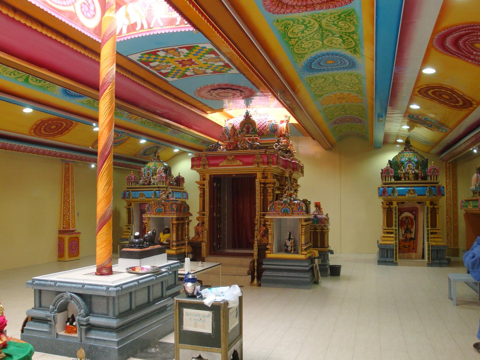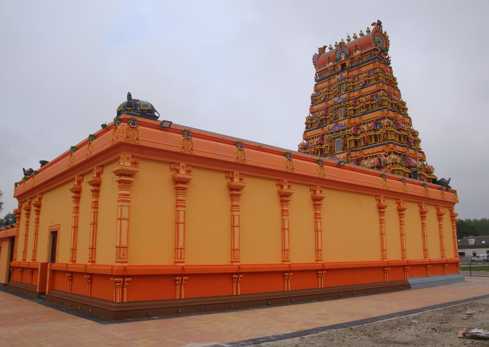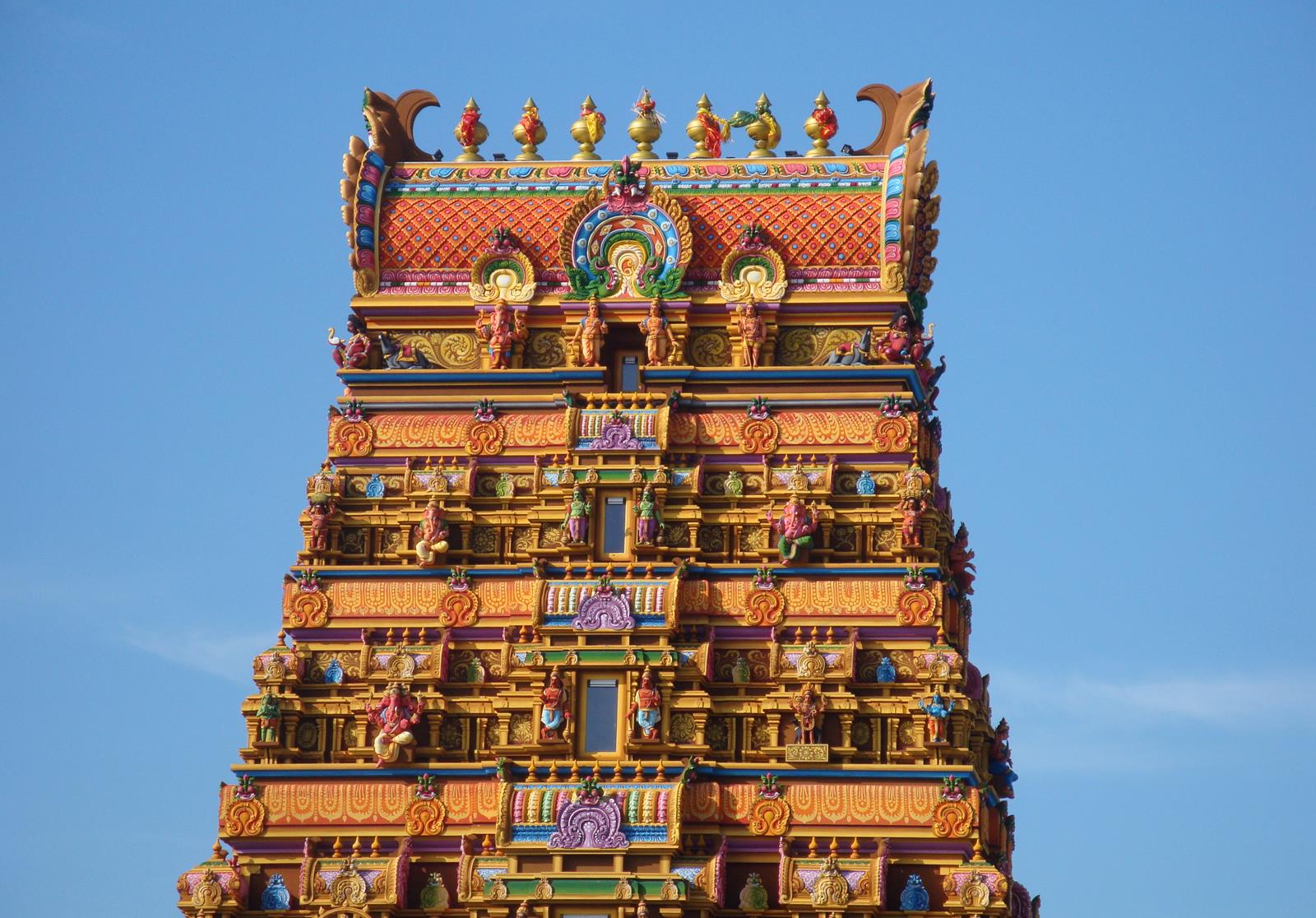 Anderhalf jaar lang is er gewerkt aan de toren, bijna twintig meter hoog. Het bouwwerk heeft vijf verdiepingen. Naar boven toe worden die smaller. In elke verdieping zit een raam, als symbool voor de openheid. Vele argeloze passanten staren ademloos omhoog naar de negentig godenbeelden en de andere ornamenten van dieren en planten. De kleuren zijn aangenaam om te zien, een warme donker-gele (bijna oranje) gloed straalt de toeschouwer tegemoet. Dezelfde kleur die aan de binnenkant van onze Haarlemse kathedraal zo’n aangenaam gevoel te weeg brengt. Een tempel als deze schijnt zijn gelijke in Europa niet te hebben. Ik citeer weer Manoraahavan: “In Duitsland staat zo’n toren, maar die is niet volgens de voorschriften gebouwd. Wij hebben hier exact de voorgeschreven maatvoering gevolgd, dat maakt deze tempel uniek.” De beelden op de toren zijn allemaal met de hand gemaakt van cement door vijftien zogeheten Sthapathies: kunstenaars uit India. Daarna werden acht kunstschilders uit Sri Lanka ingevlogen om de toren zijn vele kleuren te geven. “Zo’n bouwwerk optrekken en schilderen is echt specialistenwerk.”