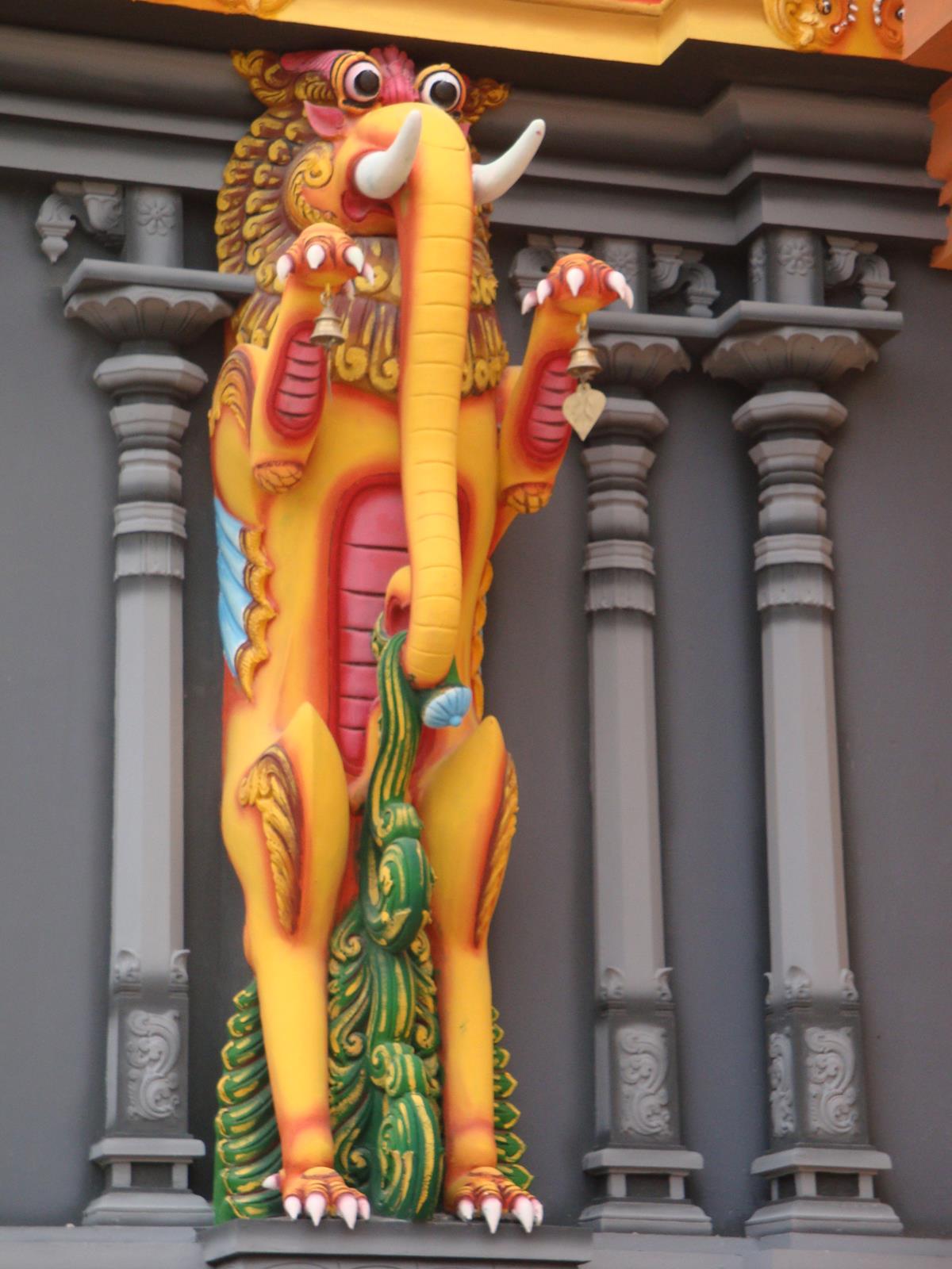 De kleurrijk beschilderde godenbeelden lijken allemaal even belangrijk. Toch is dat niet waar. Het beeld van Ganesh, de god van kennis en wijsheid, die wordt afgebeeld als een man met een ronde buik en een olifantenhoofd, komt opvallend vaak terug op de toren. “Ganesh is het hoofd van de tempel.” Aan weerskanten van de ingang staan beelden van Jali, met het lichaam van een leeuw en het hoofd van een olifant. “Als steun voor de toren, als bewaking en versiering. Je ziet het ook naast de vijf ramen van de toren: aan weerszijde een mannetje als bewaker. Pas op de wijdingsdag, 13 september 2013, kregen de beelden door de gebeden, het brengen van offers in speciale vuren hun goddelijke kracht. Die kracht blijft twaalf jaar. Het is in die tijd niet geoorloofd aan de toren te sleutelen. Men heeft, omdat het in Den Helder altijd zo waait, speciale voorzieningen aangebracht opdat zoiets ook niet nodig zal zijn. De donkere kleuren zullen met de jaren wat verbleken, maar dat is acceptabel, er zit tien jaar garantie op de kleurechtheid.”
