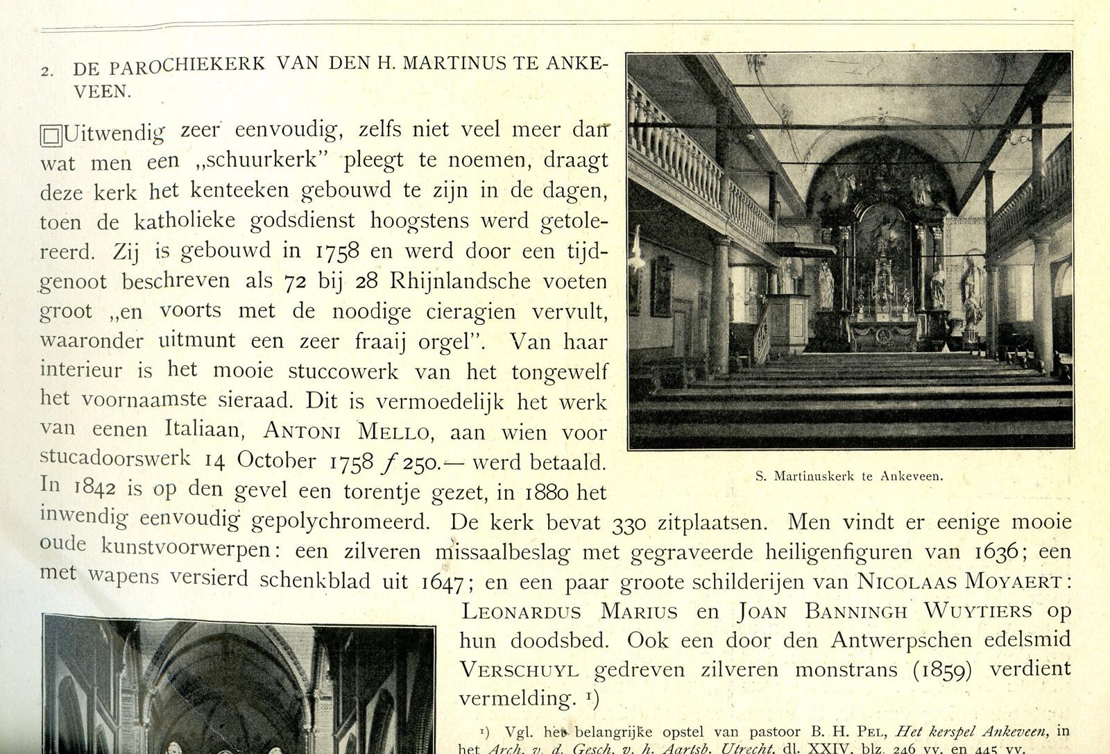 Het plassengebied in de buurt kent naast Kortenhoef, ’s Graveland en Nederhorst den Berg nog een andere woonkern: Ankeveen. De plaats werd plotseling belangrijk toen, na de reformatie, zich de vraag voordeed waar de katholieken zouden gaan kerken. In Nichtevecht? Zonder succes poogde men de oude kerk terug te krijgen. Waarom probeerde men dat niet in Nederhorst den Berg? De reformatie was daar te sterk (dat zou men nog bij de inwijding van de nieuwe kerk merken toen protestantse jongeren een relletje veroorzaakten). Daarom werd er maar begonnen in Ankeveen. In 1758 wordt hier een aan St. Maarten gewijd, katholiek schuurkerkje gebouwd. Op de oude foto’s van het interieur zien we een opvallende gelijkenis met het huidige Onze Lieve Heer op zolder in Amsterdam (inclusief de galerijen). Langs de Dammerkade trokken de Nederhorsters naar dit kerkje toe.